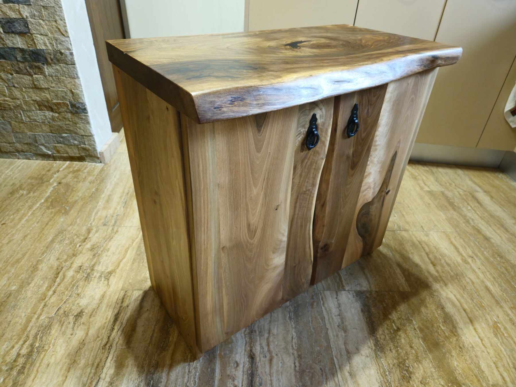 Handmade Walnut Bar Cabinet with Thick Solid Top (700×380×700 mm)
