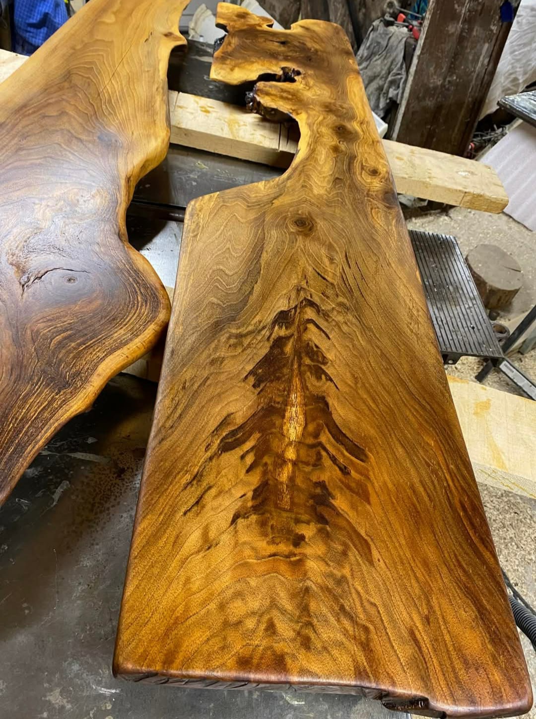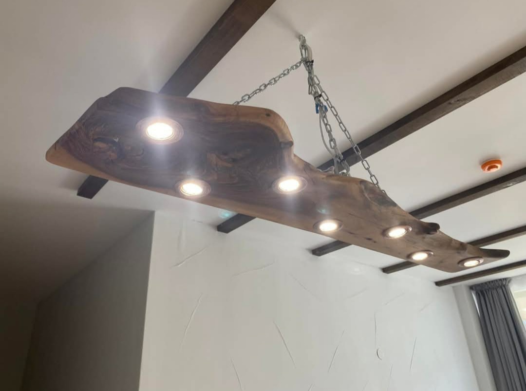 Large Handmade Live-Edge Walnut Ceiling Lamp – Custom LED Configuration.